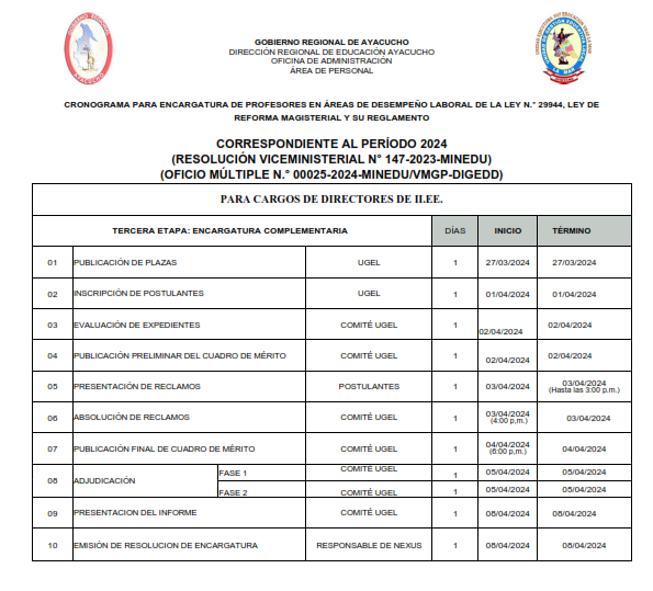 Cronograma para Encargatura Docente en Plazas Directivas - 3ra Etapa Encargatura Complementaria (2)