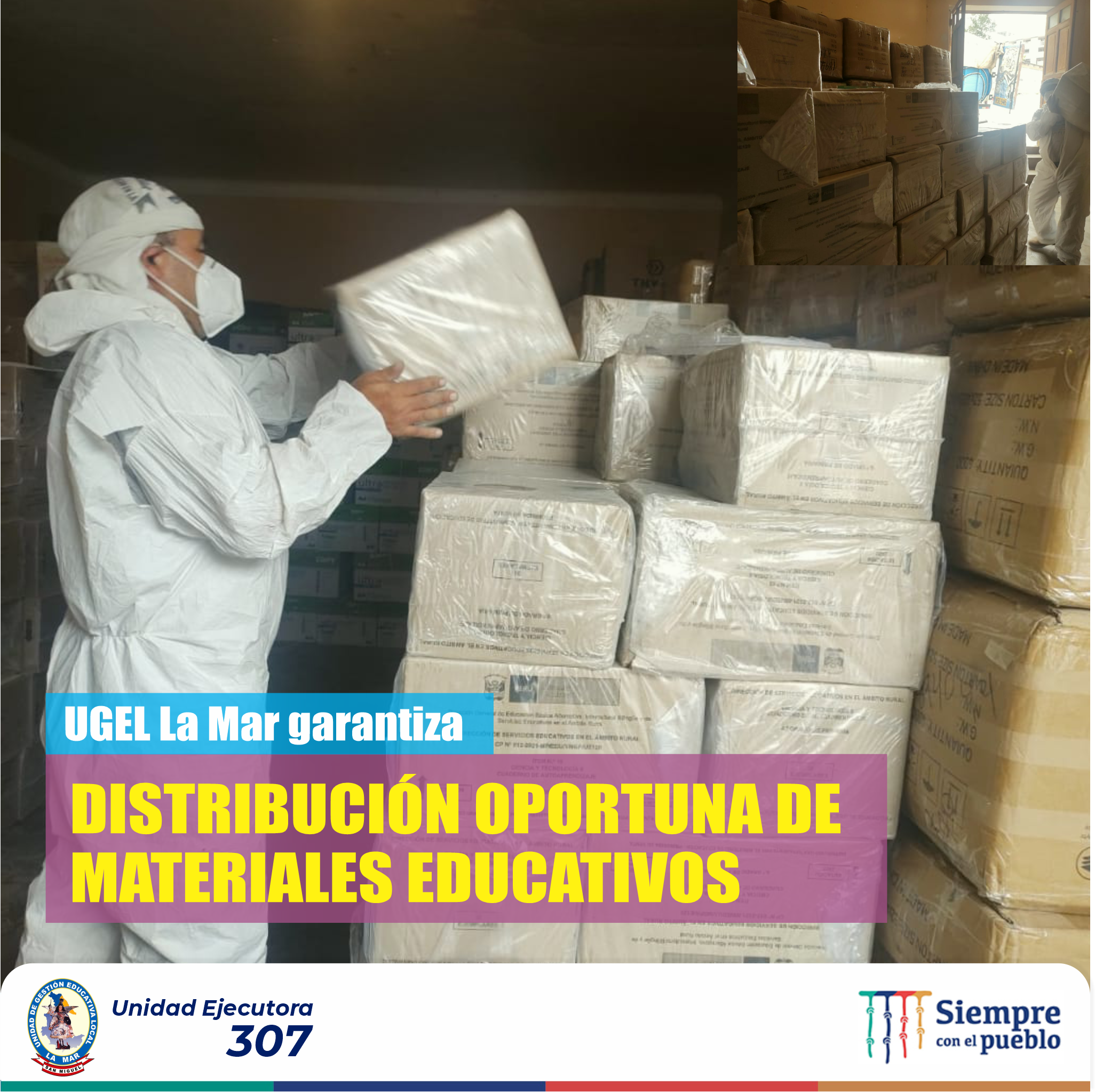 Respetando los protocolos de bioseguridad, trabajadores de la UGEL La Mar redoblan esfuerzos para que los materiales educativos (textos, cuadernos de trabajo, y fungibles)) sean distribuidos en los 486 instituciones educativas de Educación Básica Regular, de la provincia; ello con miras al Buen Inicio del Año Escolar 2022 que a nivel de la región Ayacucho se dará a partir del 14 de marzo.