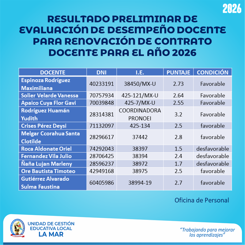 👉Atención: Resultado Preliminar de Evaluación de Desempeño Docente para Renovación de Contrato Docentes para el año 2026