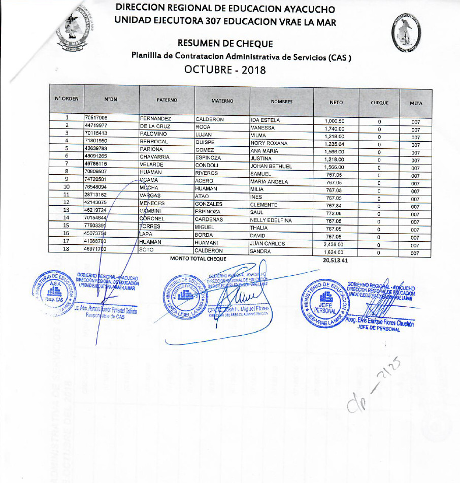 REMUNERACIÓN DEL PERSONAL CAS, DOCENTE Y ADMINISTRATIVO, CORRESPONDIENTE AL MES DE OCTUBRE.